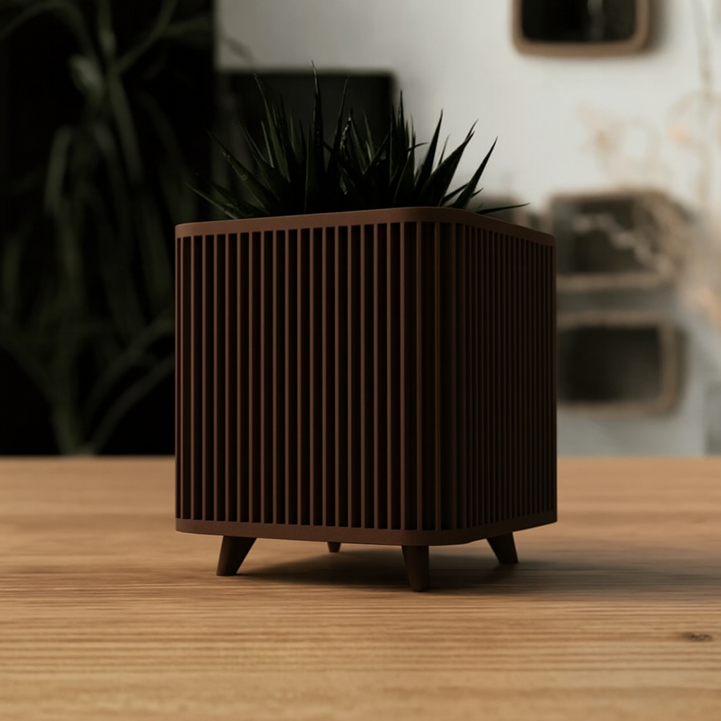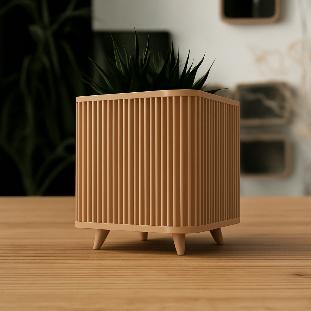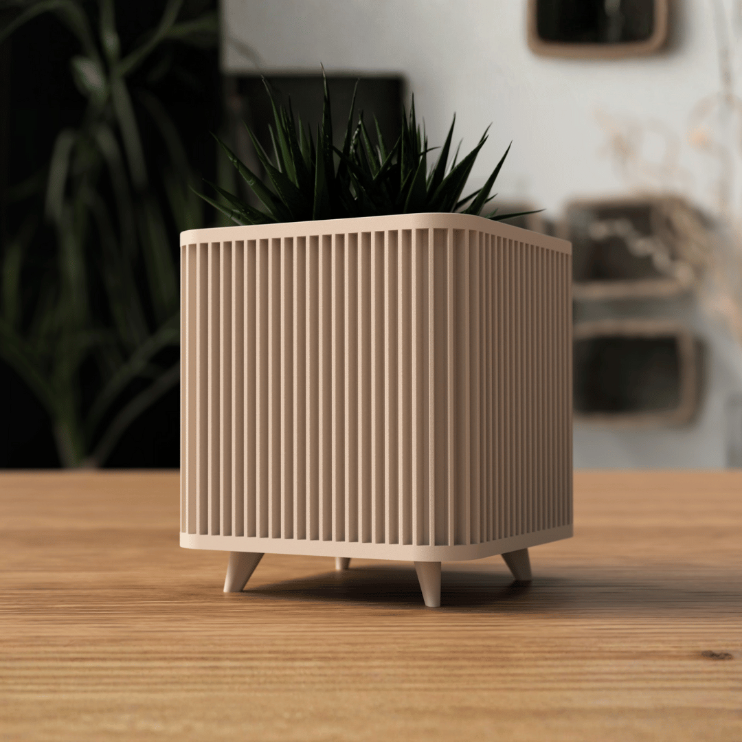 Aiva de la Homentum este un ghiveci modern inspirat din designul japonez, creat pentru a aduce echilibru si armonie in decorul casei tale. Forma sa patrata, completata de textura verticala si picioarele subtile, ofera un look japandi autentic – natural, aerisit si elegant.