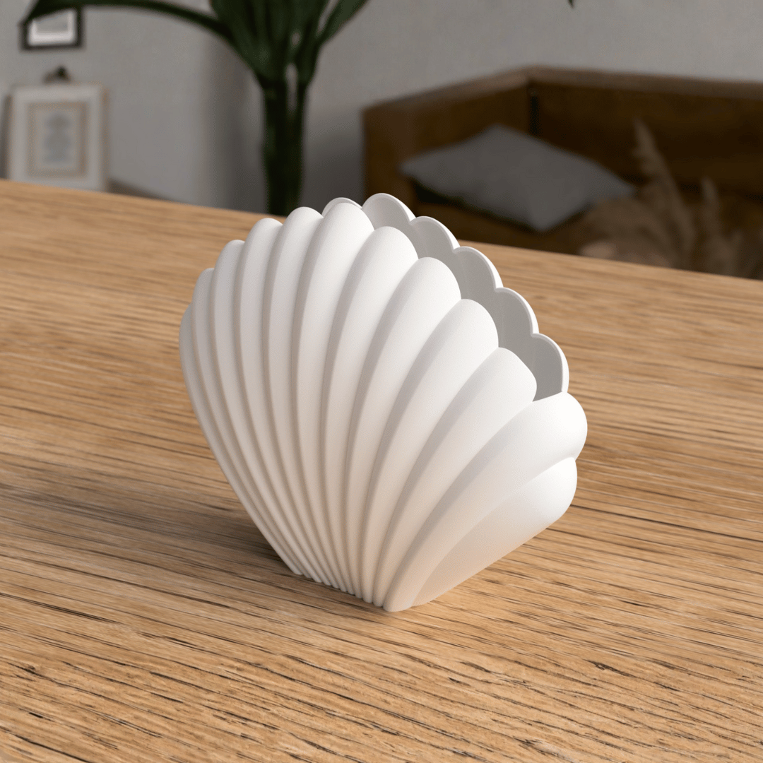 vaza moderna scoica, vaza japandi, decor minimalist, vaza decorativa moderna, homentum decor, vaza alba scoica, decor home aesthetics, vaze print 3d premium, obiecte decor moderne.