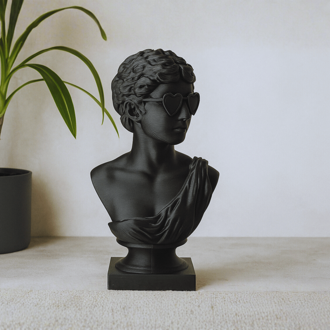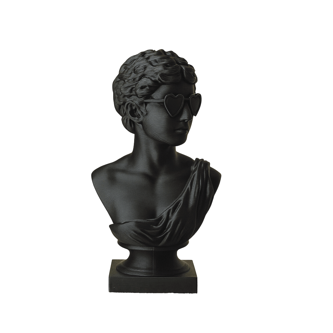 Bambinos transformă arta clasică într-un manifest modern. Inspirat de estetica greco-romană, acest bust elegant poartă o pereche de ochelari în formă de inimă – un detaliu ironic și sofisticat, care rupe granițele dintre tradițional și contemporan.