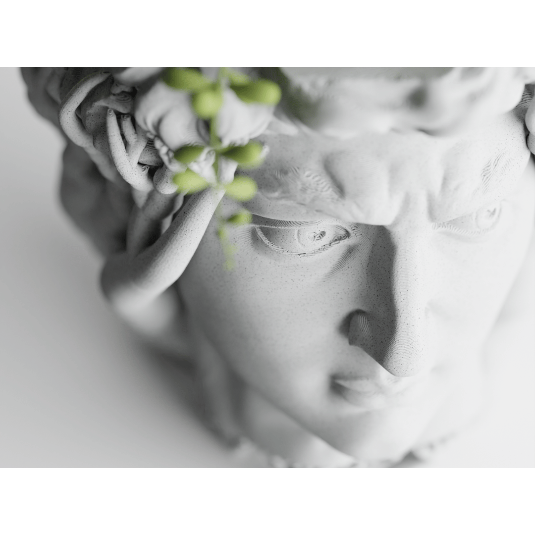 Davide nu este doar un ghiveci – este o sculptură contemporană ce îmbină perfecțiunea formelor clasice cu fluiditatea naturii. Inspirat de figura renascentistă a lui David, acest design aduce o dimensiune organică unică, cu rădăcini și mâini care se contopesc armonios cu trăsăturile feței.