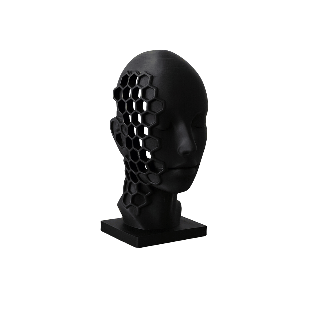 Enoa sculptură conceptuală, bust geometric, sculptură negru mat, artă contemporană, decor modern, sculptură abstractă, design geometric, Homentum
