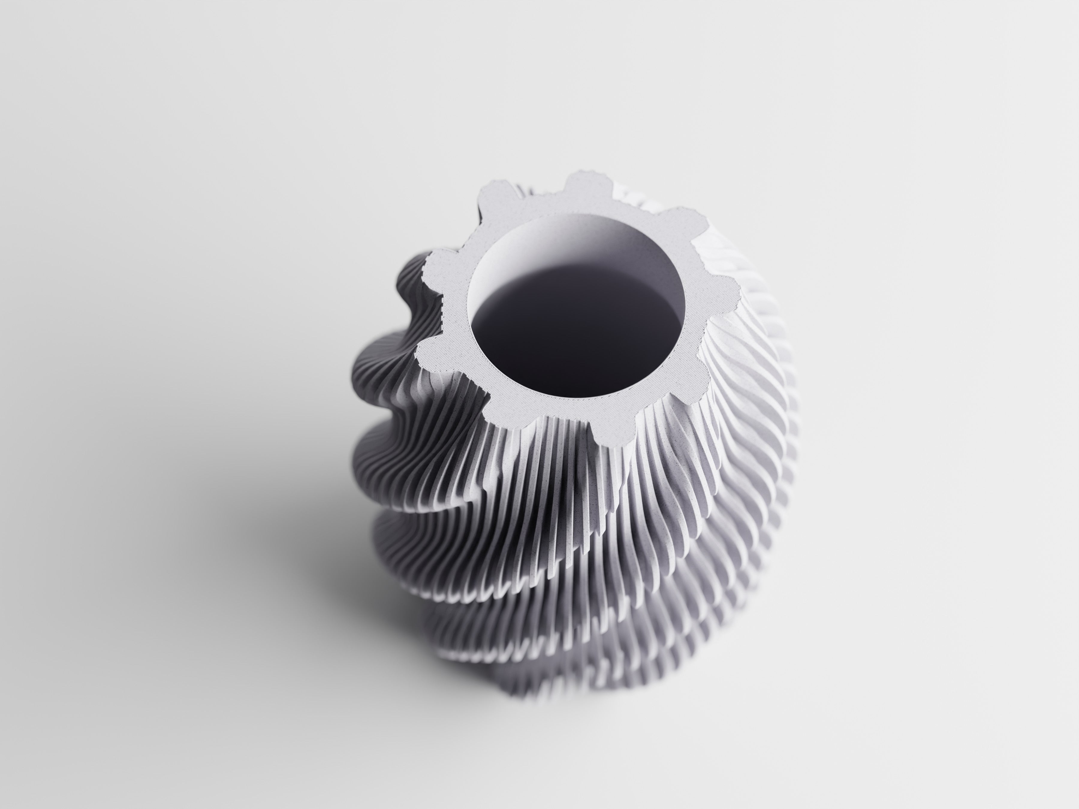 Eolia este o vază decorativă modernă în care forma curge natural, iar lumina se joacă pe suprafețe fluide. Liniile ondulate creează o senzație de mișcare liniștită, transformând fiecare unghi într-o perspectivă nouă.