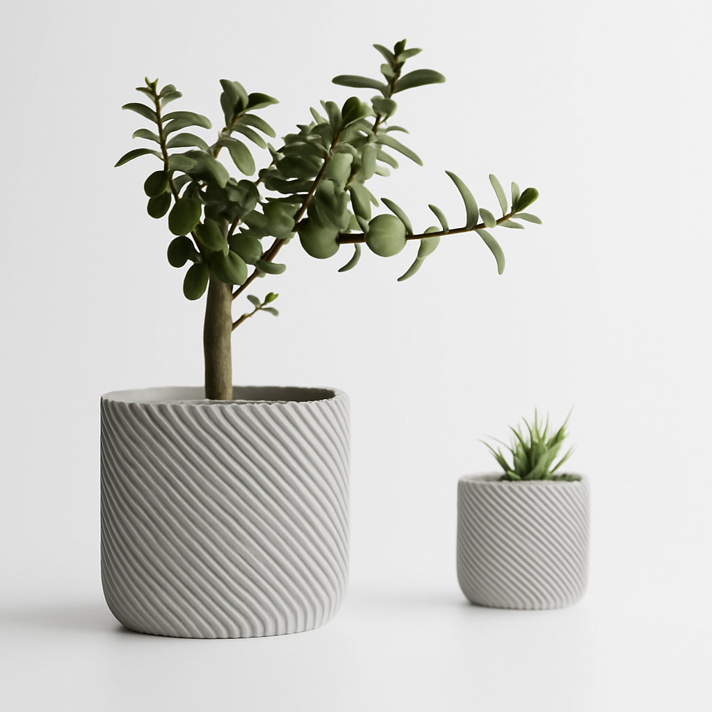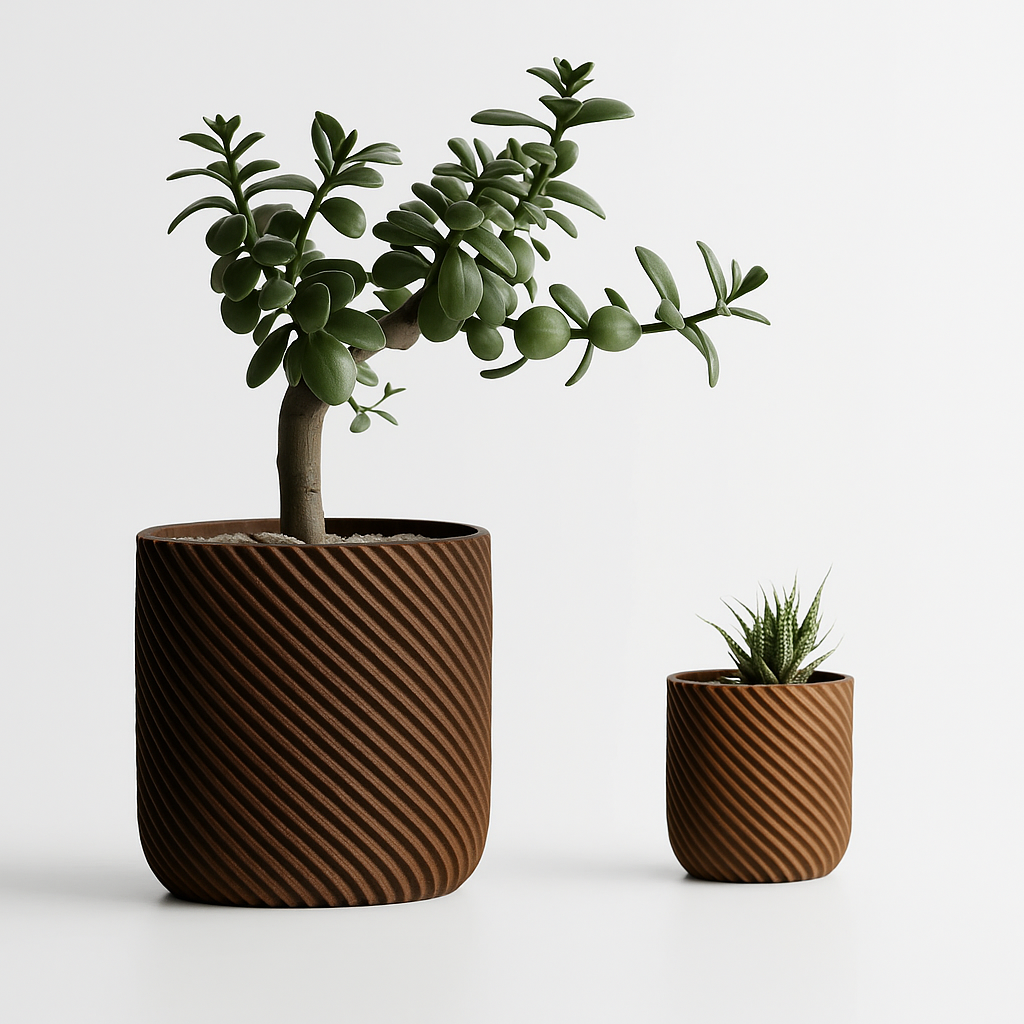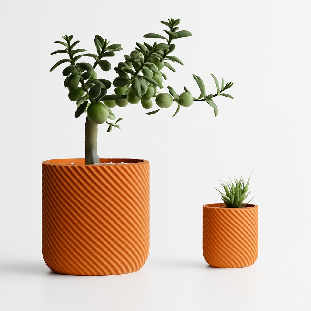 Eroni impresionează printr-un design modern și echilibrat, cu pereți groși și o textură fină în striații diagonale. Este un ghiveci care aduce un aer premium și o senzație de stabilitate, perfect pentru spațiile contemporane care pun accent pe detalii subtile.