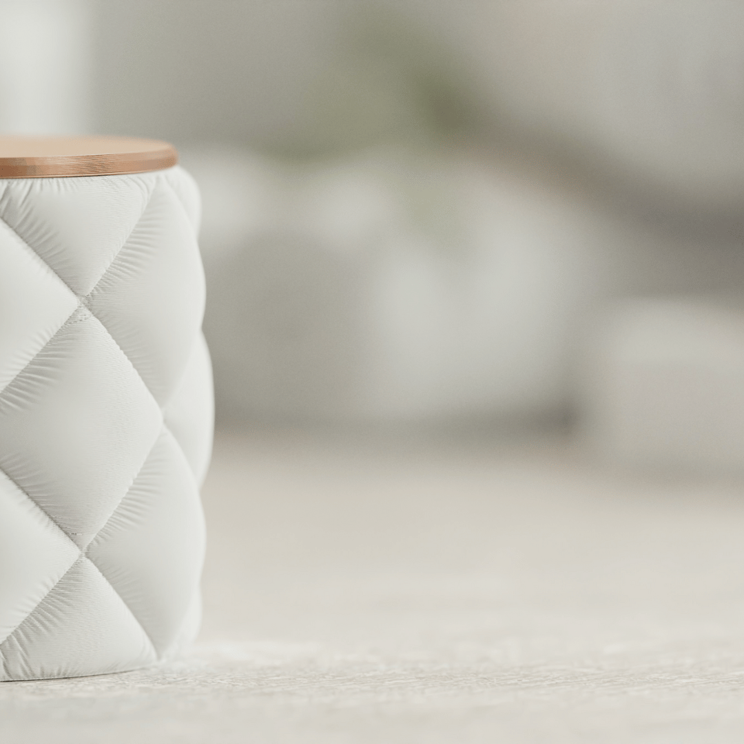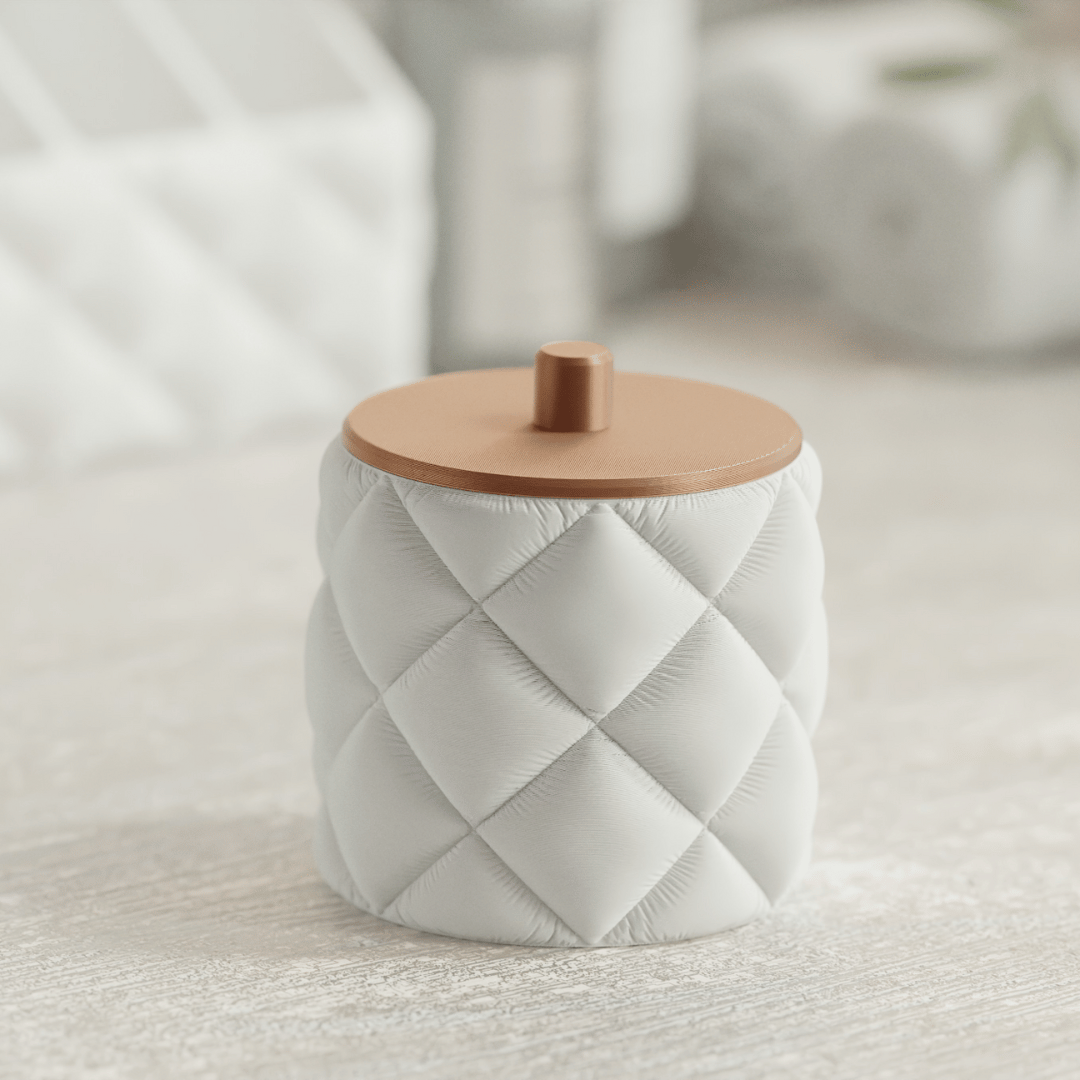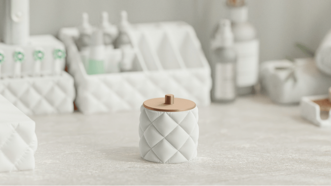 Luro face parte din colecția Inflated Bathroom Set și aduce un echilibru perfect între formă, textură și funcționalitate. Cu un design moale, tapițat și un capac elegant, acest recipient este ideal pentru depozitarea dischetelor demachiante, a bijuteriilor sau a altor mici accesorii de baie.