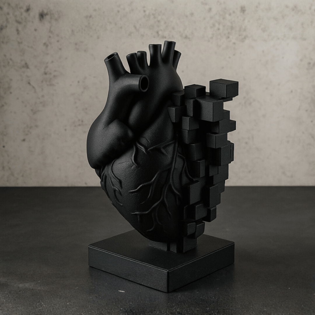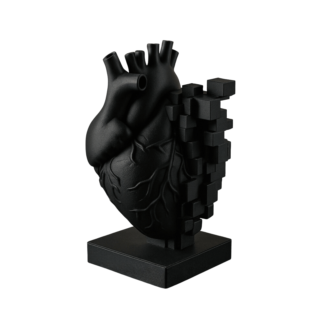 Luro sculptură inimă, inimă digitală, sculptură conceptuală, artă modernă, sculptură negru mat, artă simbolică, decor contemporan, Homentum