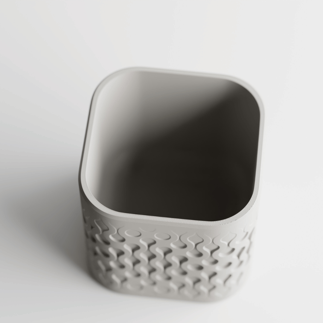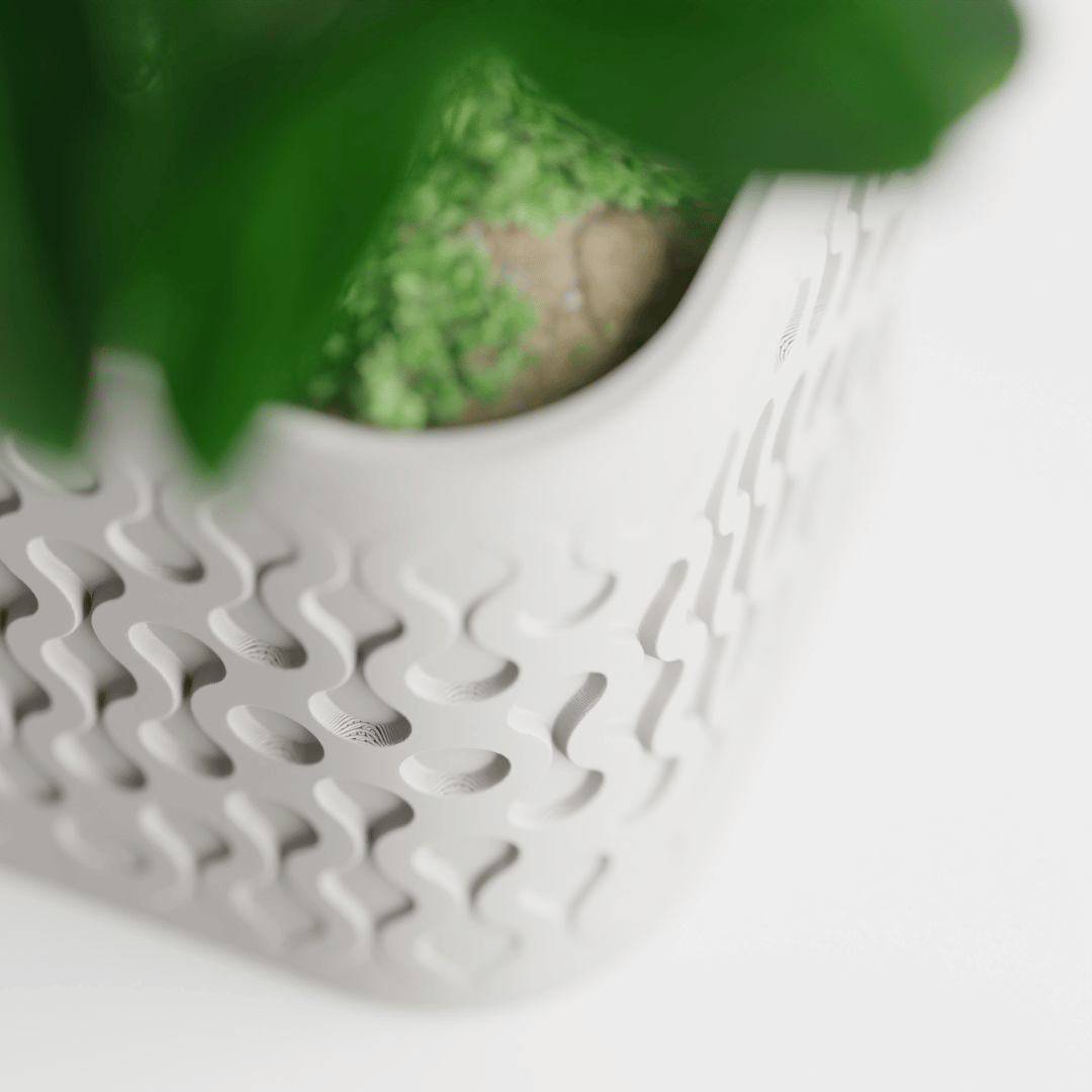 Mirava transformă mișcarea organică a apei și a formelor naturale într-o expresie vizuală calmă și elegantă. Suprafețele sale par să curgă, formând un dans subtil între linii moi și adâncituri circulare care prind lumina din fiecare unghi. Este mai mult decât un simplu ghiveci – este o piesă de artă tactilă, creată pentru a da viață plantelor și spațiilor tale.