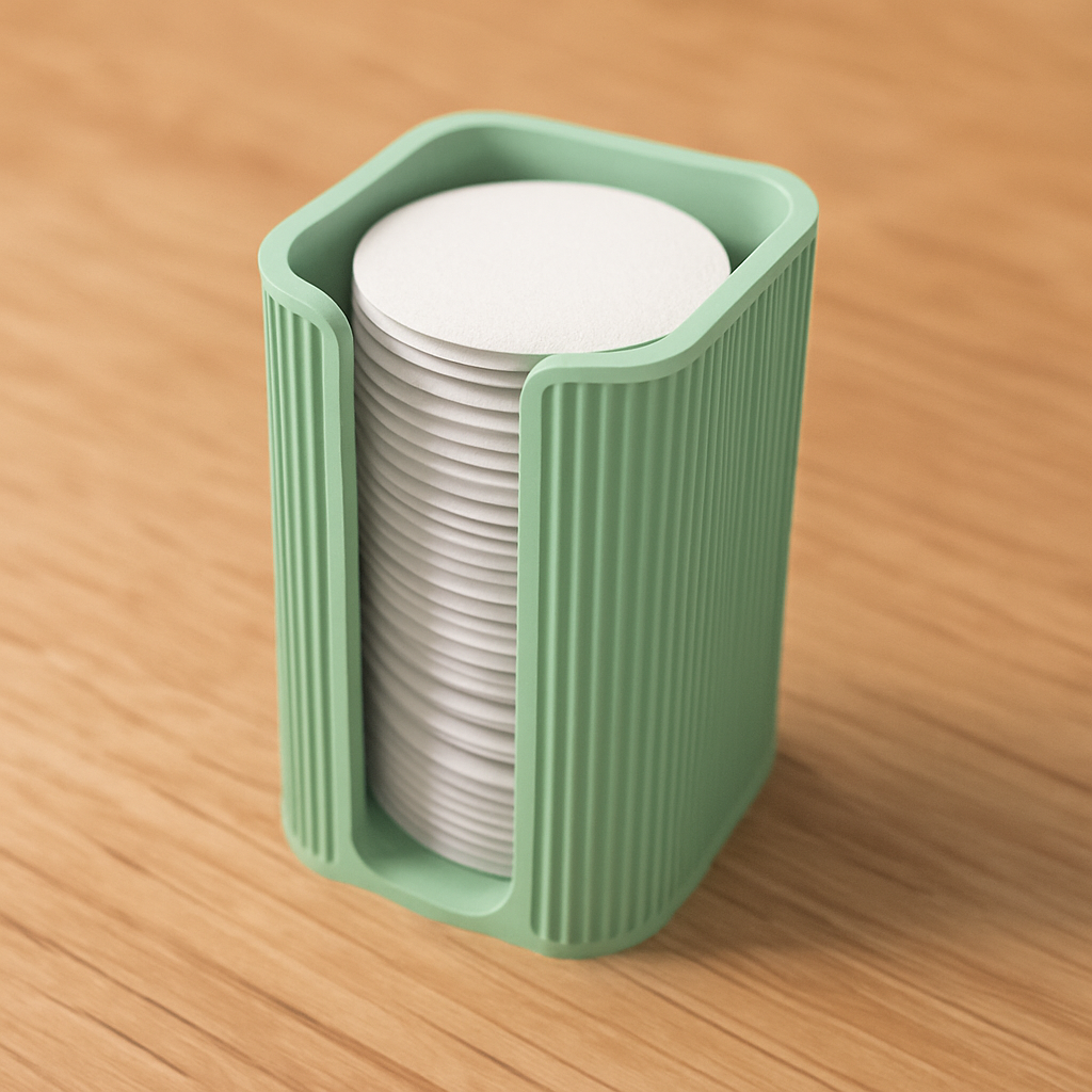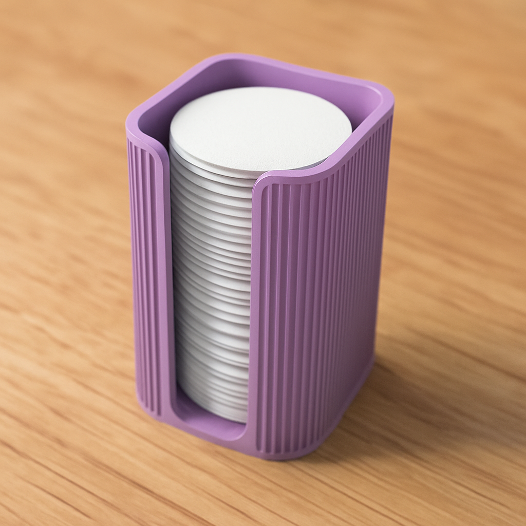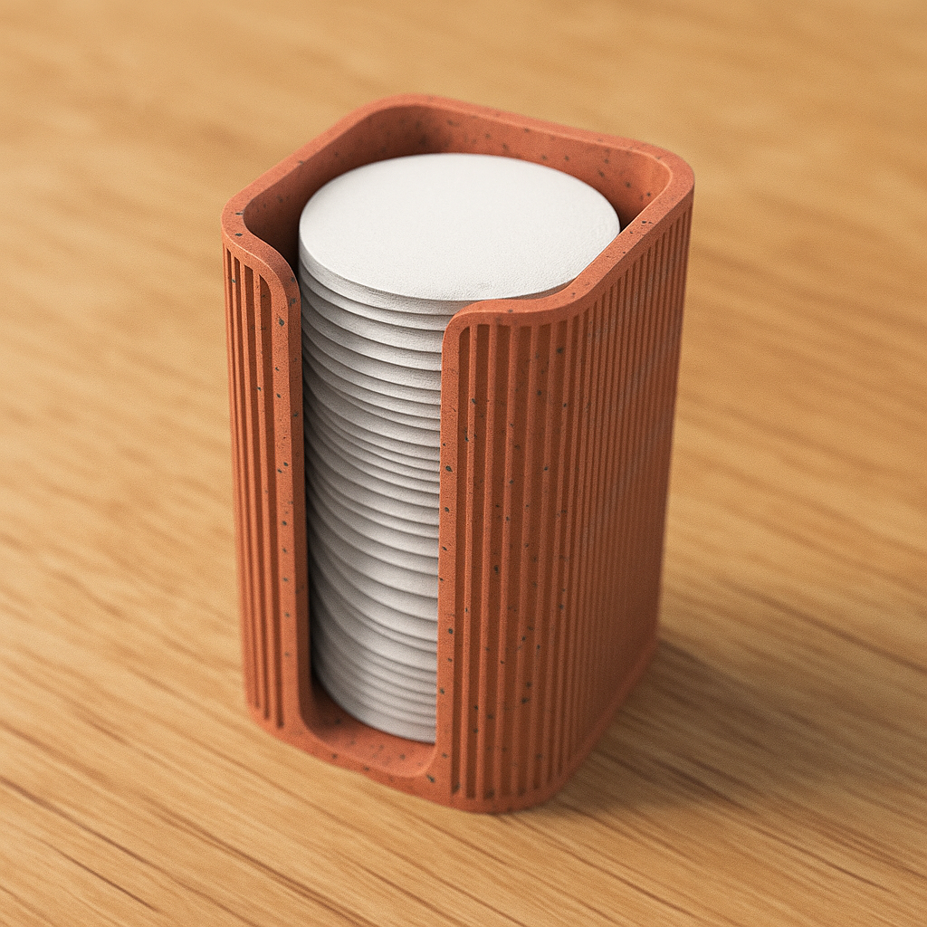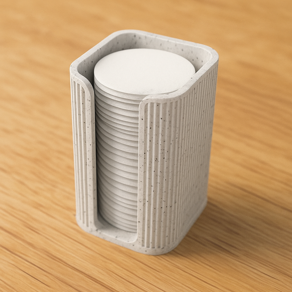 Suport dischete demachiante Homentum, organizator baie, accesorii moderne Japandi, design minimalist pentru baie, suport demachiant 3D print, decor baie modernă, accesorii estetic funcționale, organizare elegantă spa-uri, home decor minimalist.