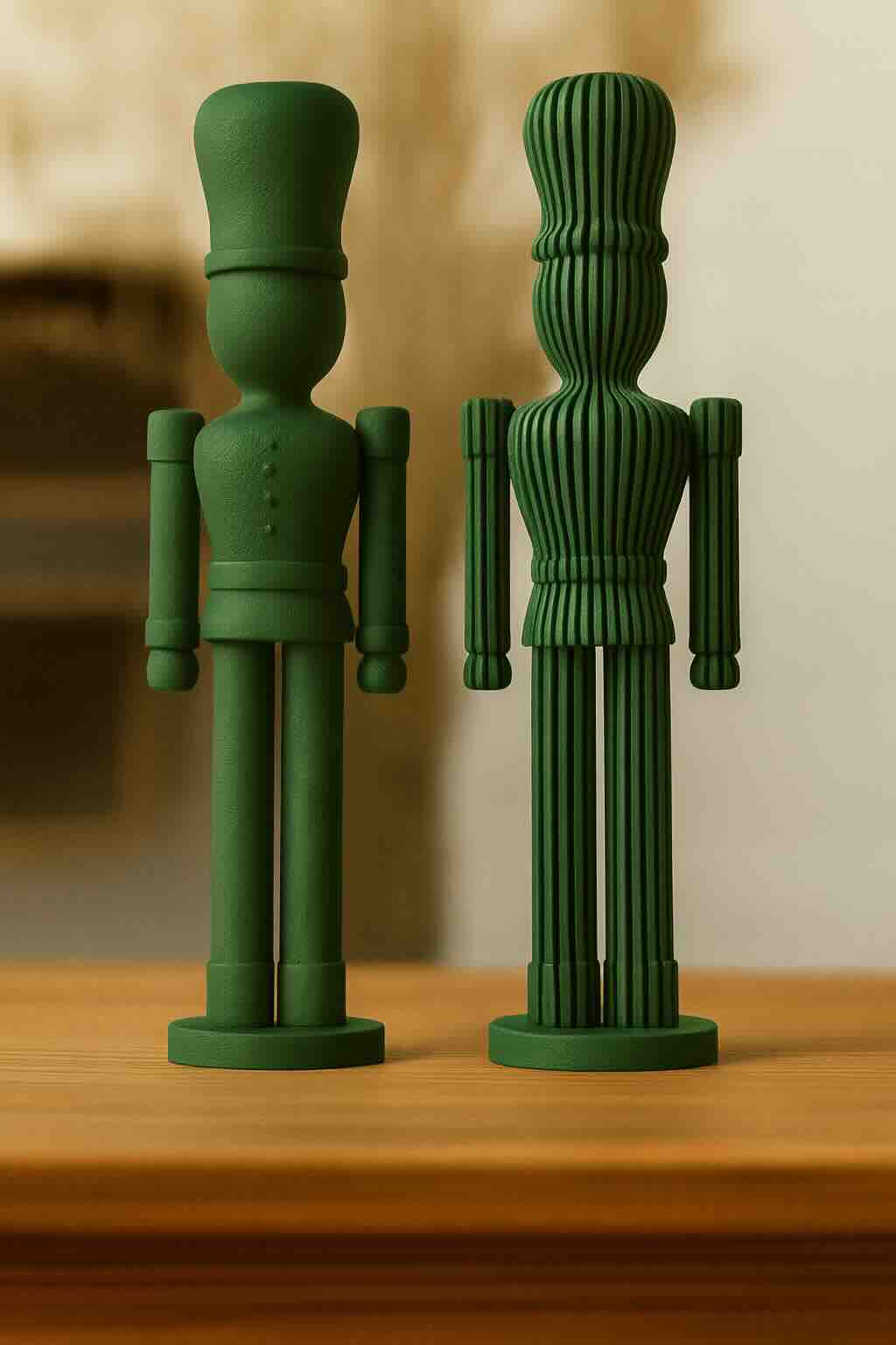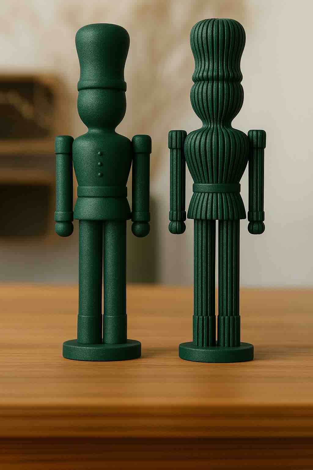 În spațiul potrivit, cele două figurine creează un dialog vizual: fuzzy evocă naturalețe și căldură, în timp ce ribbed aduce ordine, claritate și profunzime.