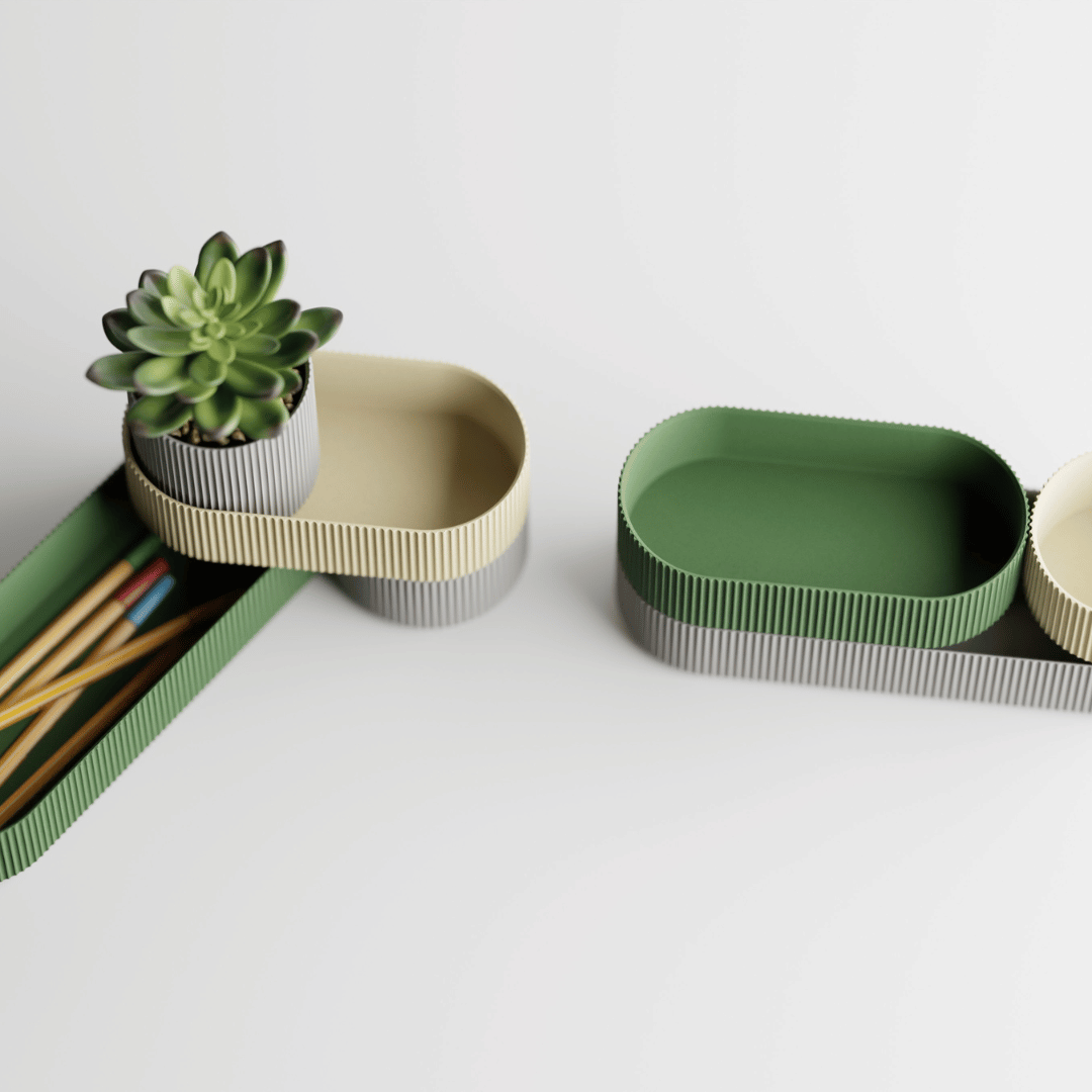 Fiecare element Orama poate fi combinat, suprapus sau rotit liber – un sistem care încurajează creativitatea și adaptarea la spațiul tău. Poți forma compoziții geometrice, suporturi pentru plante, organizatoare de birou sau pur și simplu piese decorative cu personalitate.