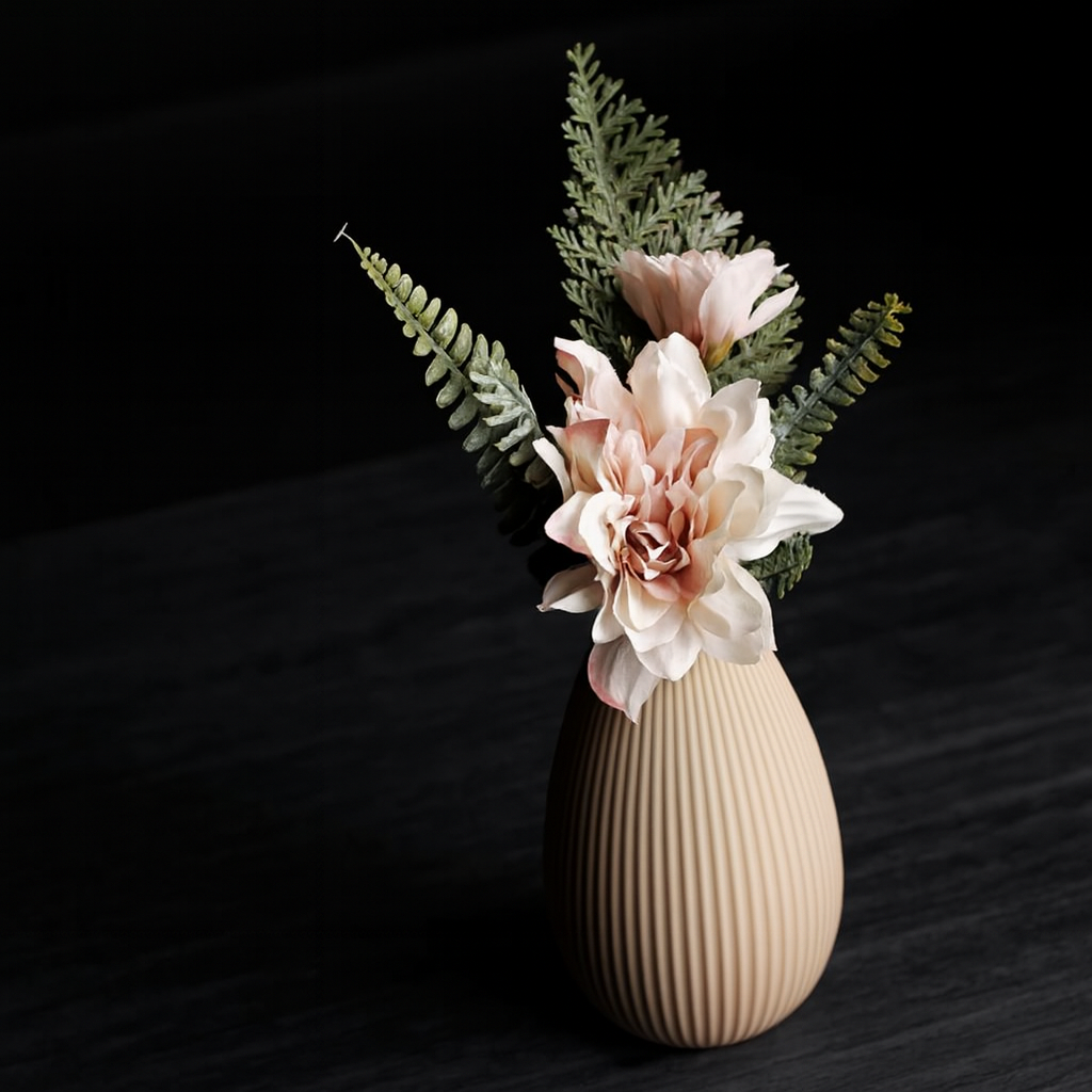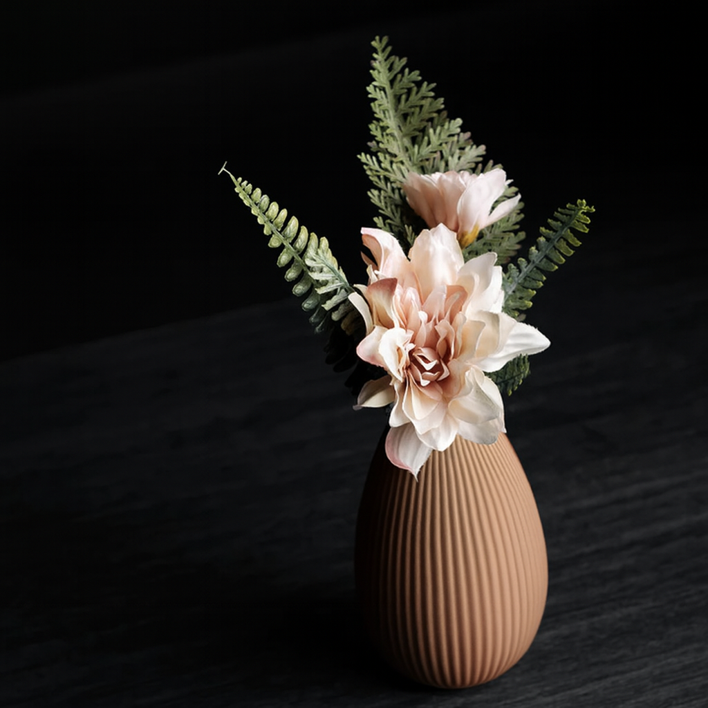 Orelia îmbină naturalețea formelor organice cu eleganța discretă a designului modern. Cu o suprafață fin texturată și o siluetă îngustă, această vază adaugă un accent de liniște și rafinament în orice încăpere.