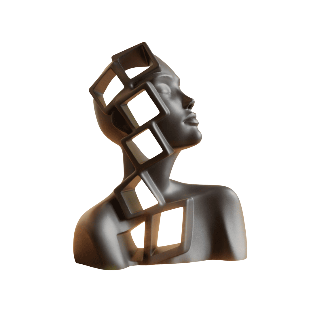 Orfeo este o sculptură ce explorează fragmentarea gândului și armonia imperfecțiunii. Bustul feminin, traversat de forme geometrice deschise, devine un simbol al percepției și identității fluide.