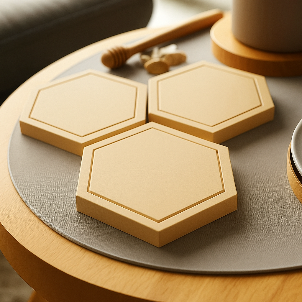 suport pahare, set decorativ, suporturi hexagonale, accesorii bar, decor modern, Homentum, suporturi pahare minimaliste, accesorii dining