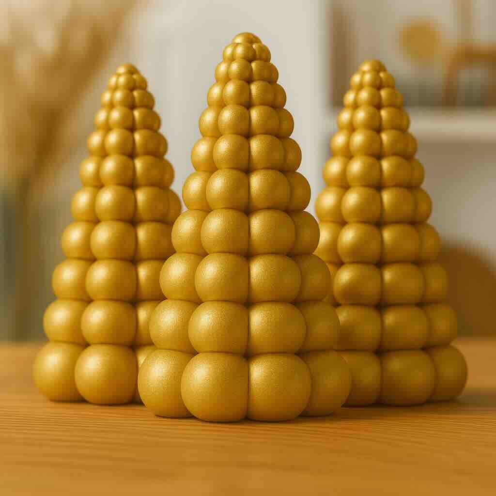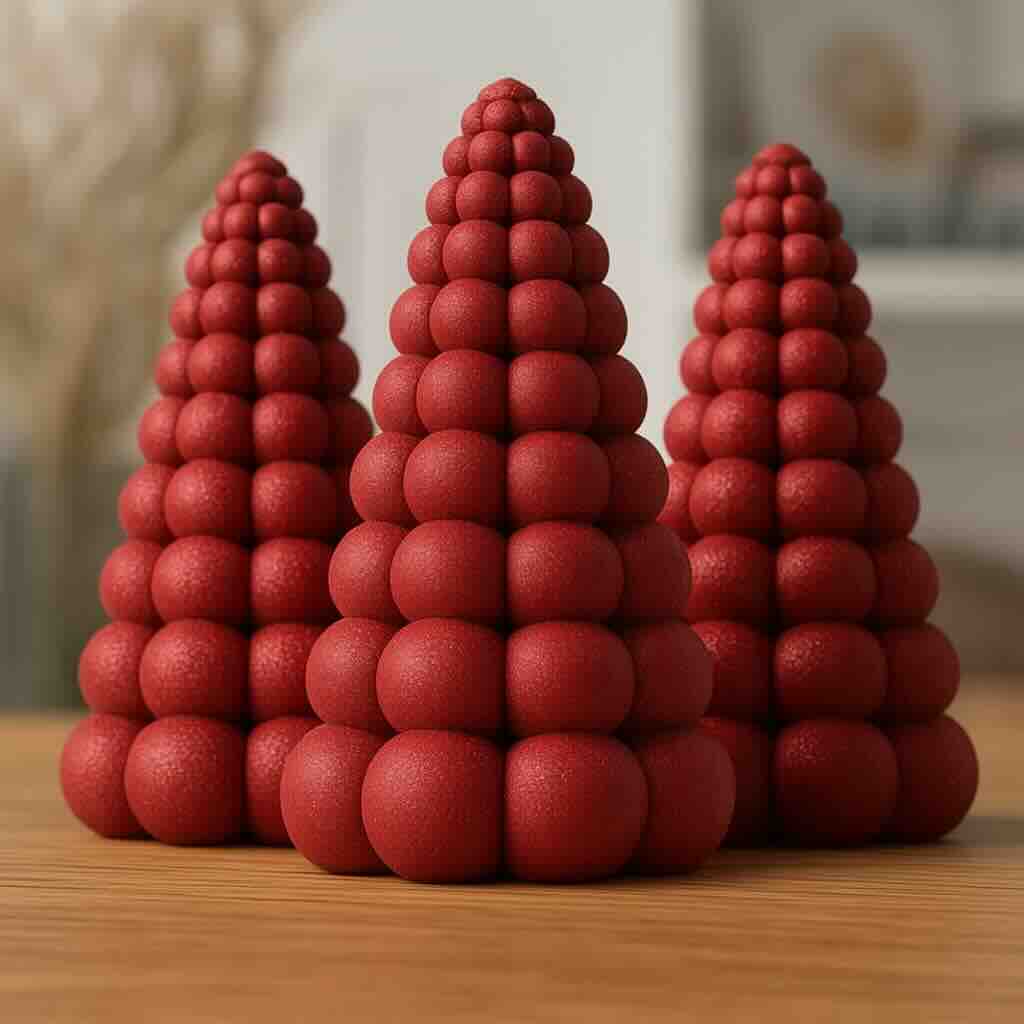 Pinova este un set decorativ de trei brăduți sculpturali, creați pentru a aduce căldură, lumină și armonie în decorul de sărbători. Designul organic, format din volume rotunjite, oferă o estetică modernă și calmă, inspirată din stilul nordic și japandi.