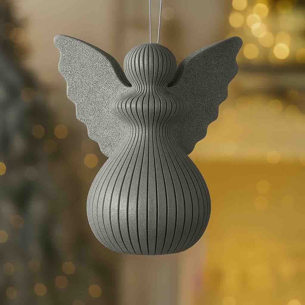 Setul include trei îngerași suspendabili, disponibili fie în finisaj matasos cu reflexii fluide, fie în versiunea sclipicioasă, ideală pentru accente festive.