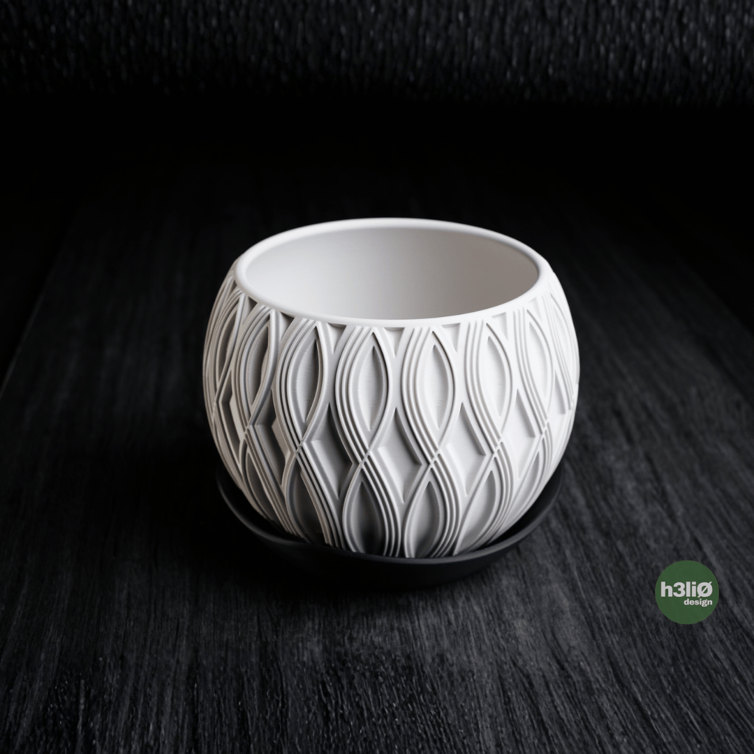 Tavo îmbină estetica naturală cu precizia designului geometric, creând un ghiveci care inspiră calm și rafinament. Textura sa în relief, formată din motive ovale fine, adaugă profunzime vizuală și o notă subtilă de lux.