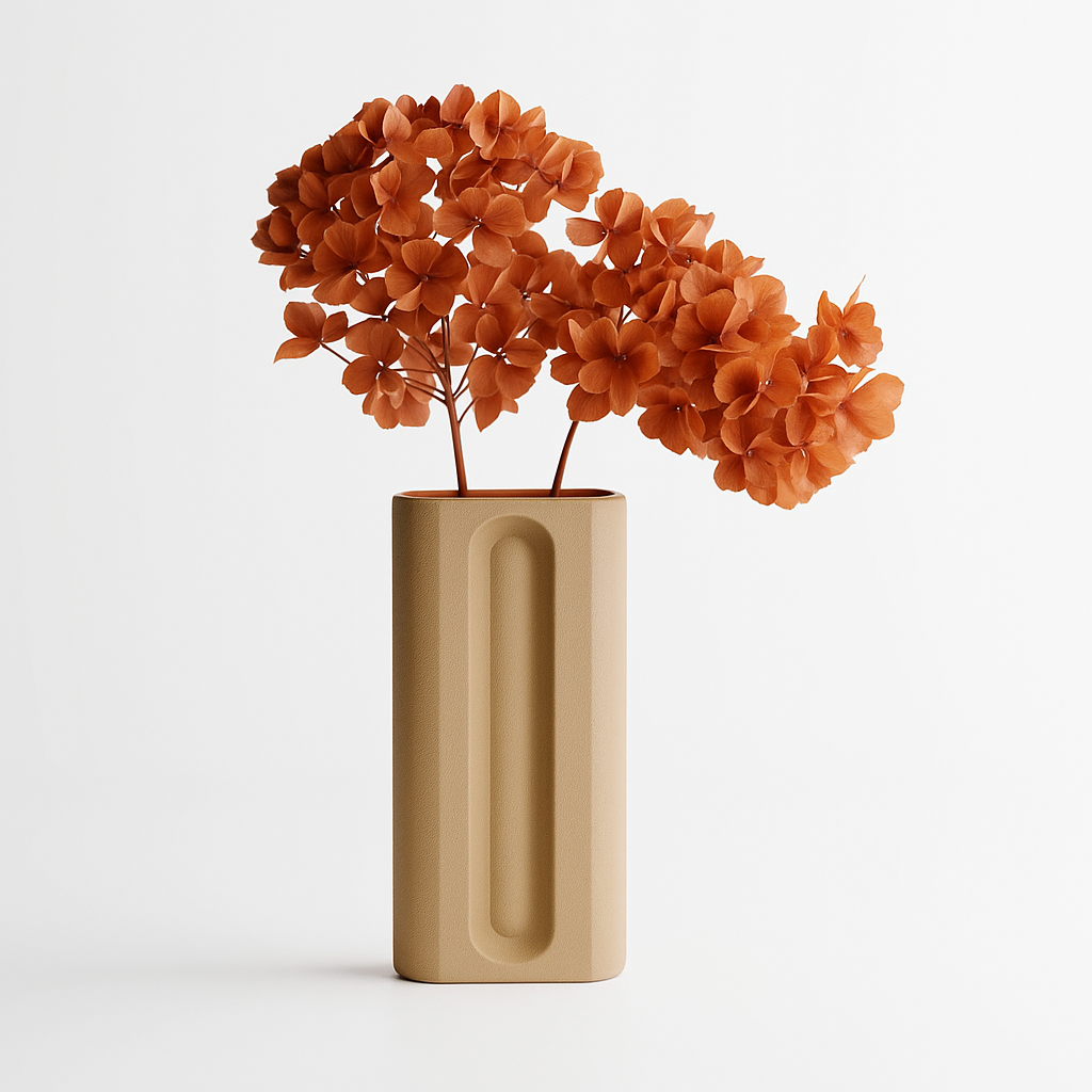 Thessa este o vază care redefinește simplitatea prin contrast. Inspirată din arhitectura modernă, combină un corp rectangular cu margini fine și o adâncitură centrală în formă de pilă, creând o siluetă echilibrată, puternică și elegantă în același timp.
