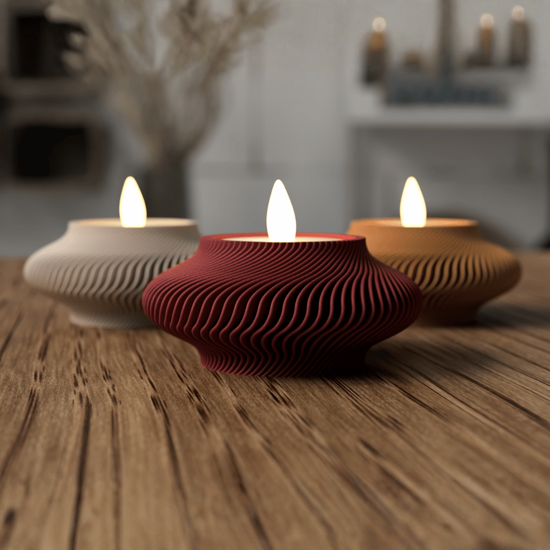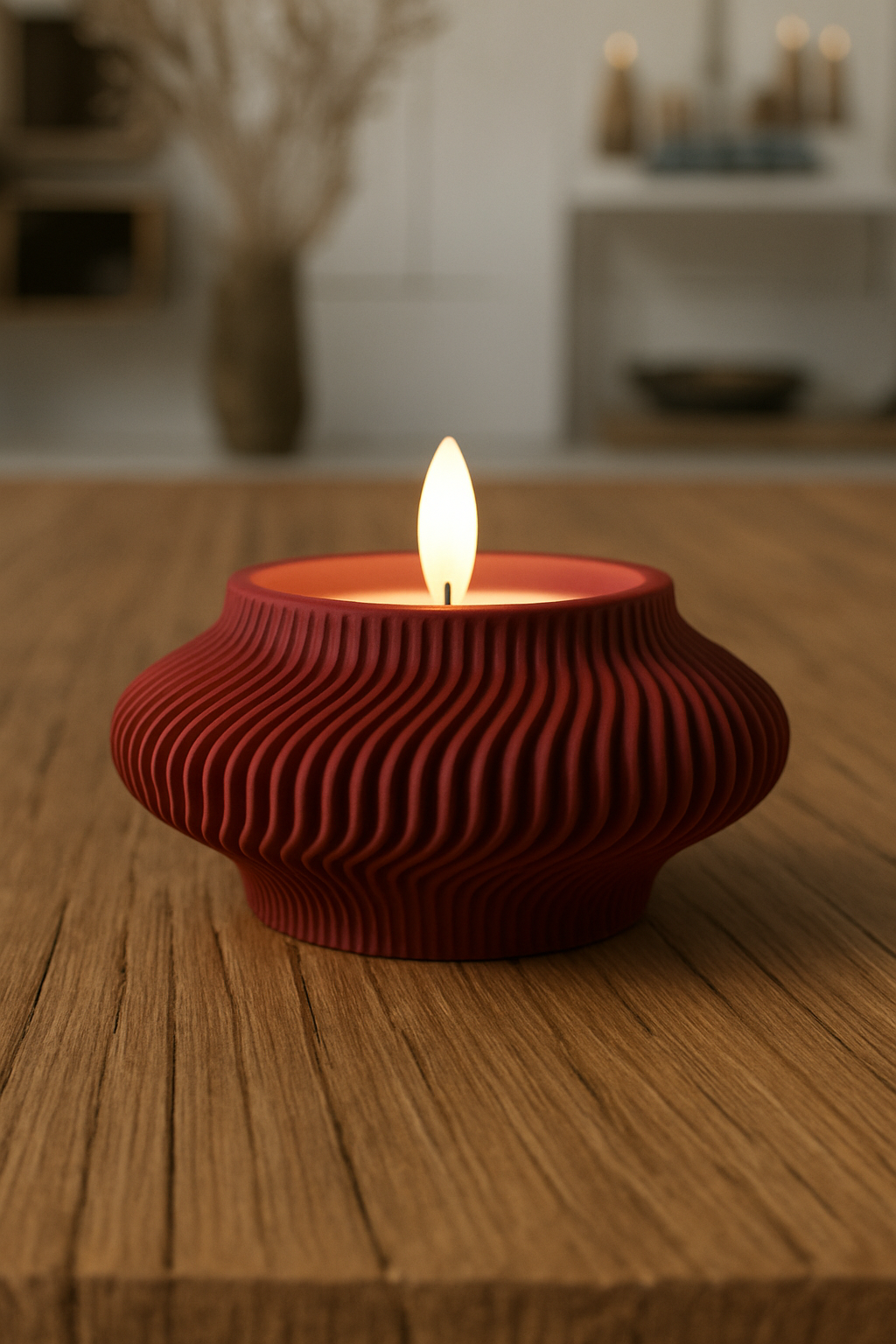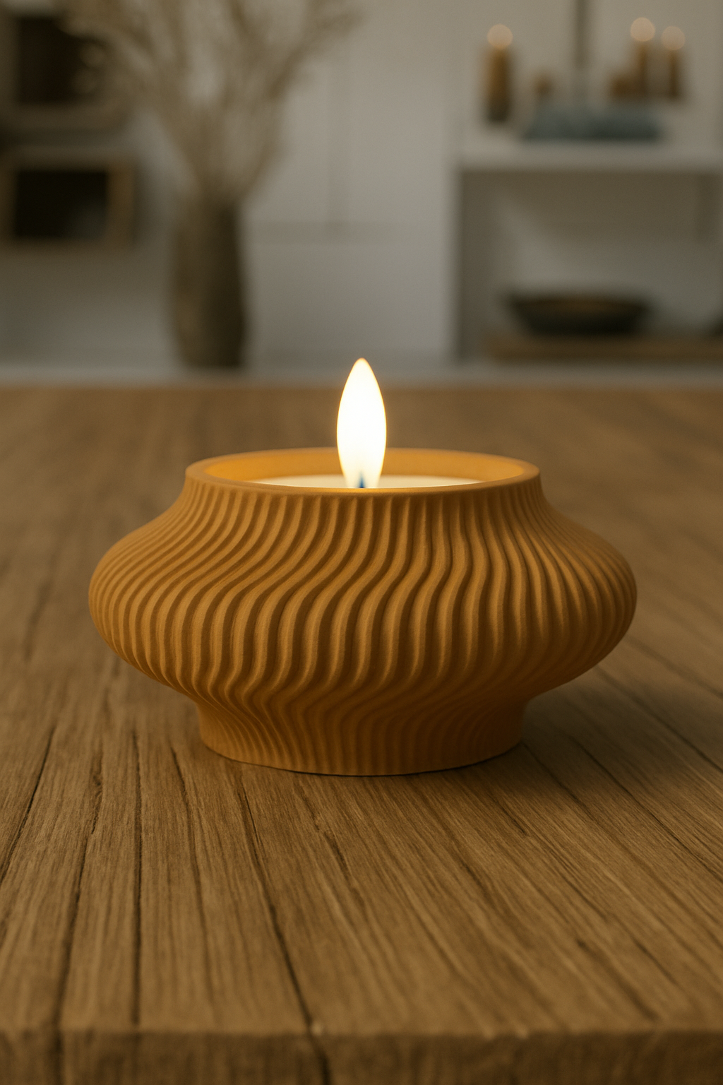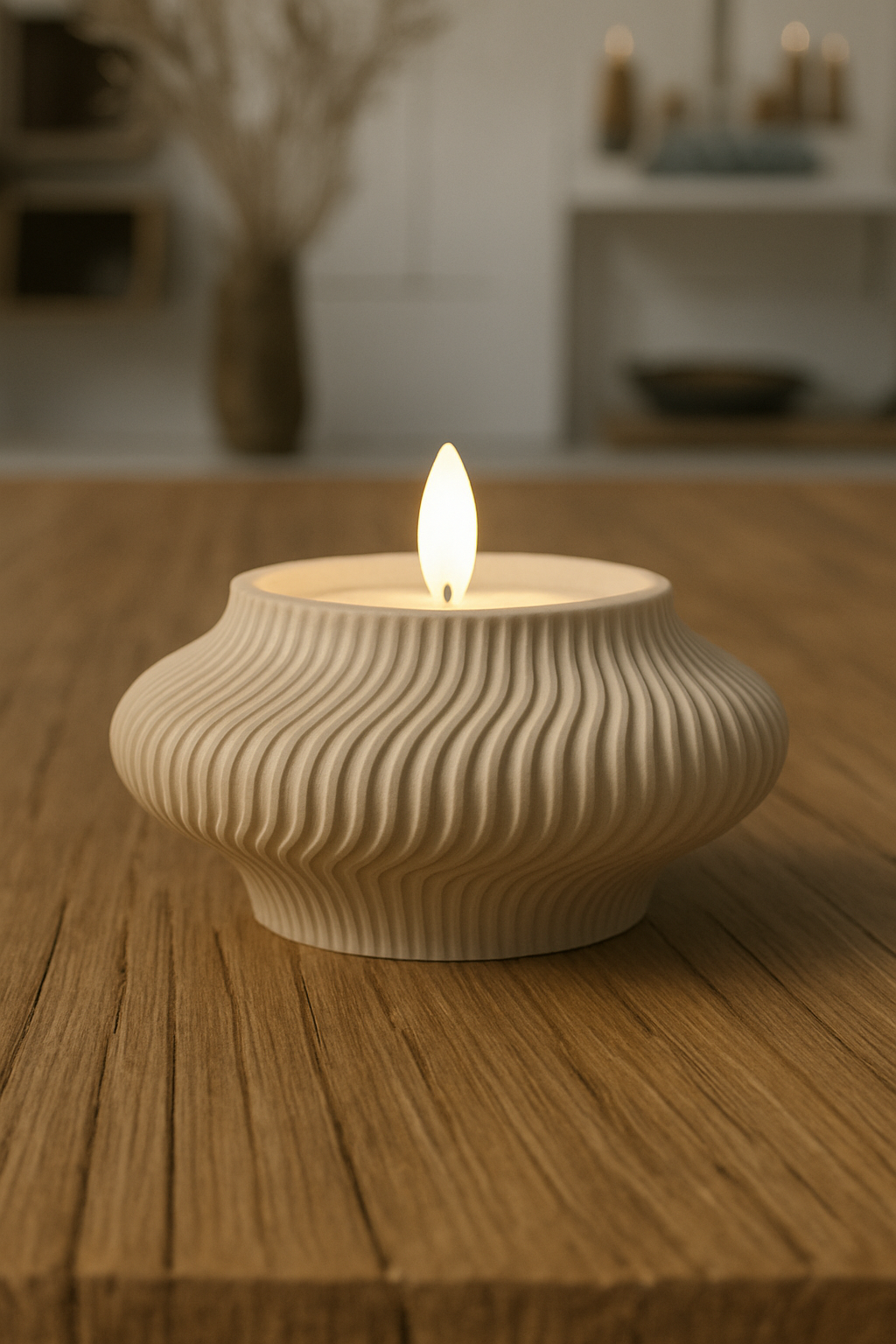 suport lumanare japandi, tealight holder modern, suport lumanare LED, decor minimalist, home decor japandi, tealight bambulab, suport sculptural Homentum, decor de iarna, lumina ambientala moderna.