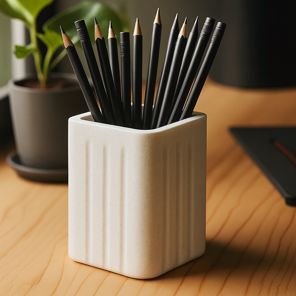 Vento aduce claritate și ordine în spațiul tău de lucru. Cu un design geometric echilibrat și o formă compactă, expune instrumentele de scris într-un mod elegant și funcțional.