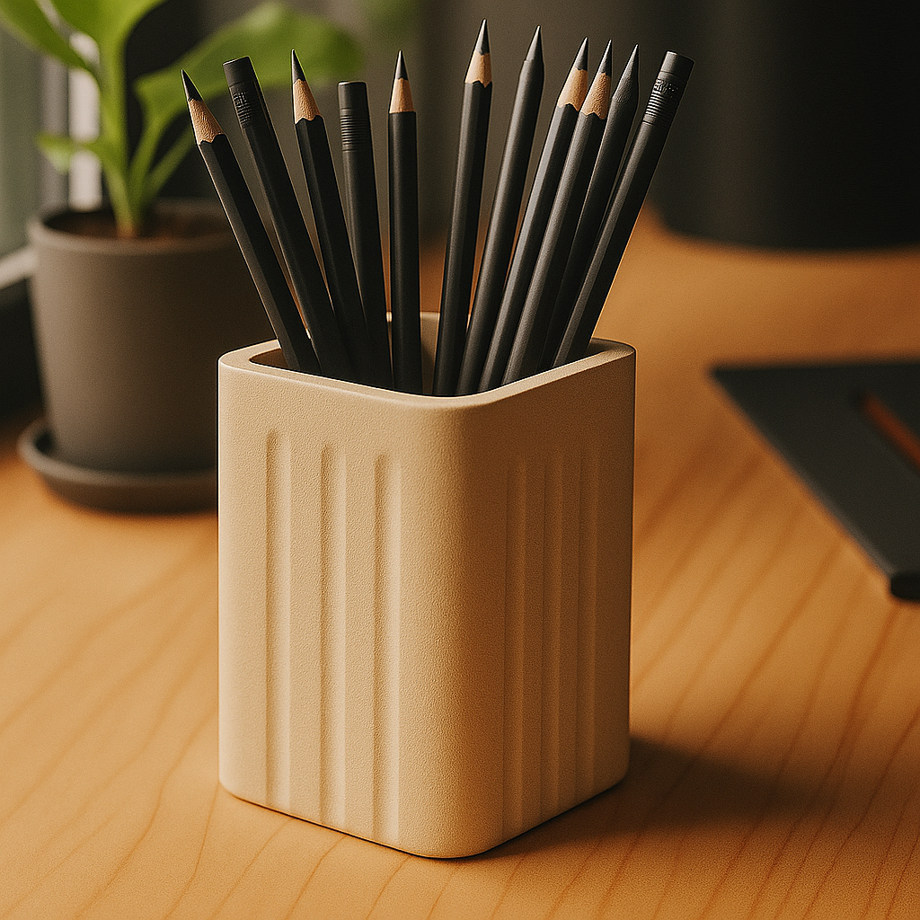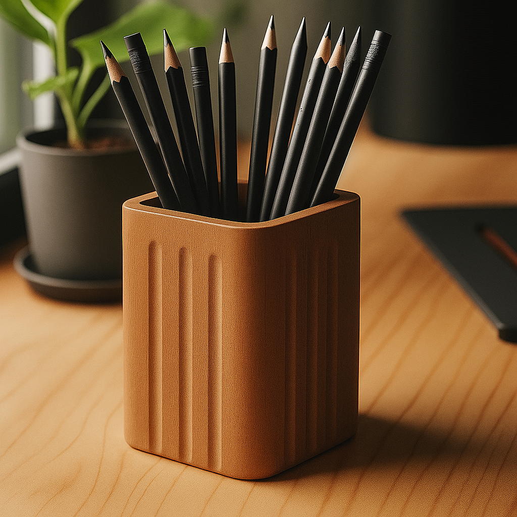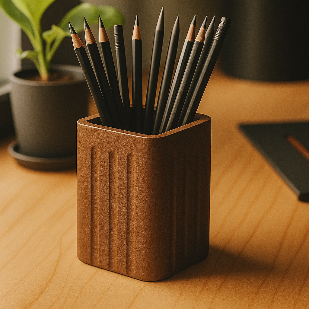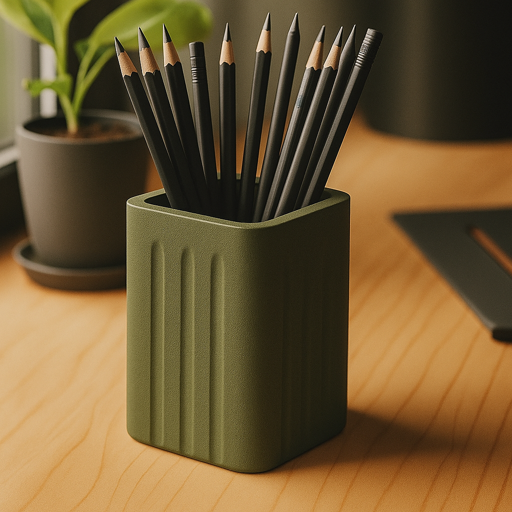 organizator birou, suport creioane, accesorii birou moderne, home office minimalist, homentum, organizare spațiu de lucru, design geometric, print 3D